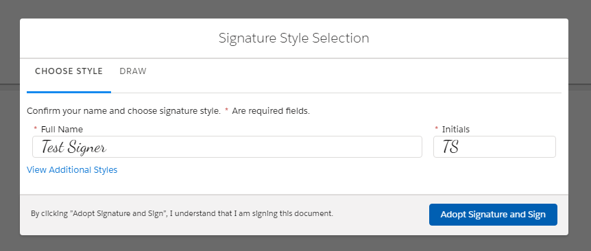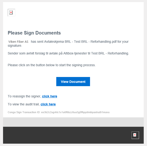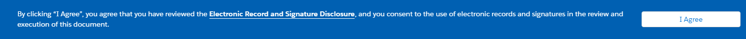 1. Klikk på «View Document» 2. Husk å trykke på «I agree» i banneret nederst på skjermen. 3. For å signere trykk på den blå boksen der det står «Signature» og velg din signatur. 4. Velg utseende på signatur på «View Additonal Styles», og trykk på «Adopt Signature and Sign». 5. Les gjennom vilkårene. Når du er klar til å sende inn signatur, trykk på «Complete Signing» øverst i høyre hjørne. 6. Alle får en bekreftelsesmail når dokumentet er ferdig signert.